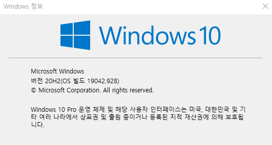 - Windows 10 Pro - 버전 20H2(OS 빌드 19042.928)